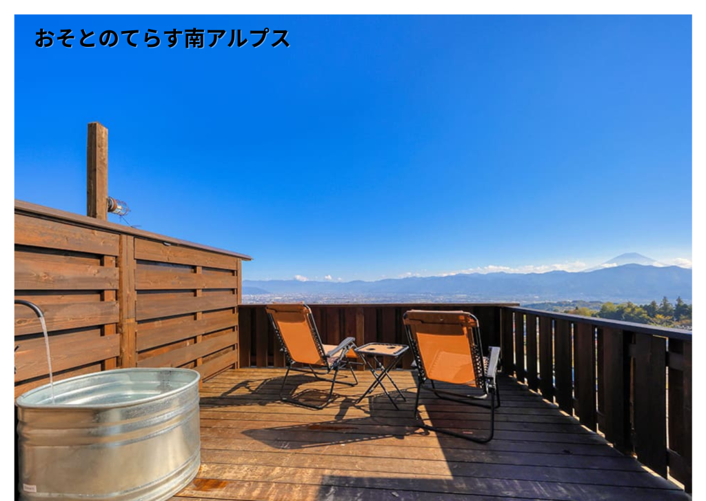 - おそとのてらす 南アルプス(山梨県):薪ストーブをつかった国産檜のプライベートサウナと 南アルプスの名水を使った檜の水風呂